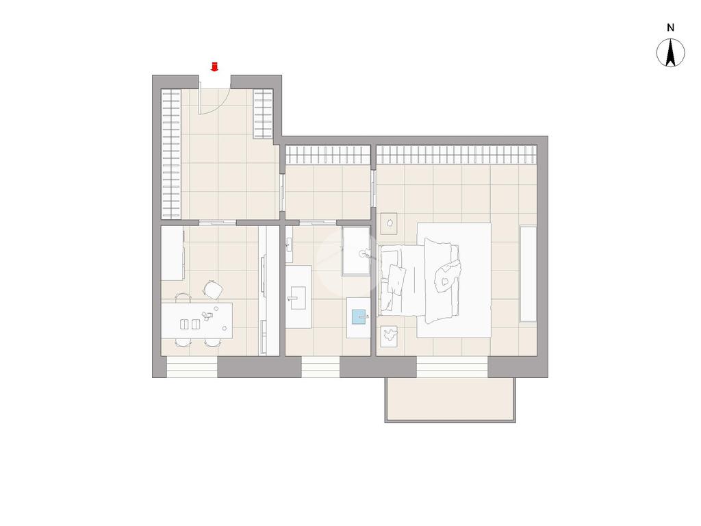 L'immobile è così composto: ingresso in disimpegno, cucina abitabile, camera da letto, bagno finestrato. Completa la soluzione un balcone, per i momenti di relax.