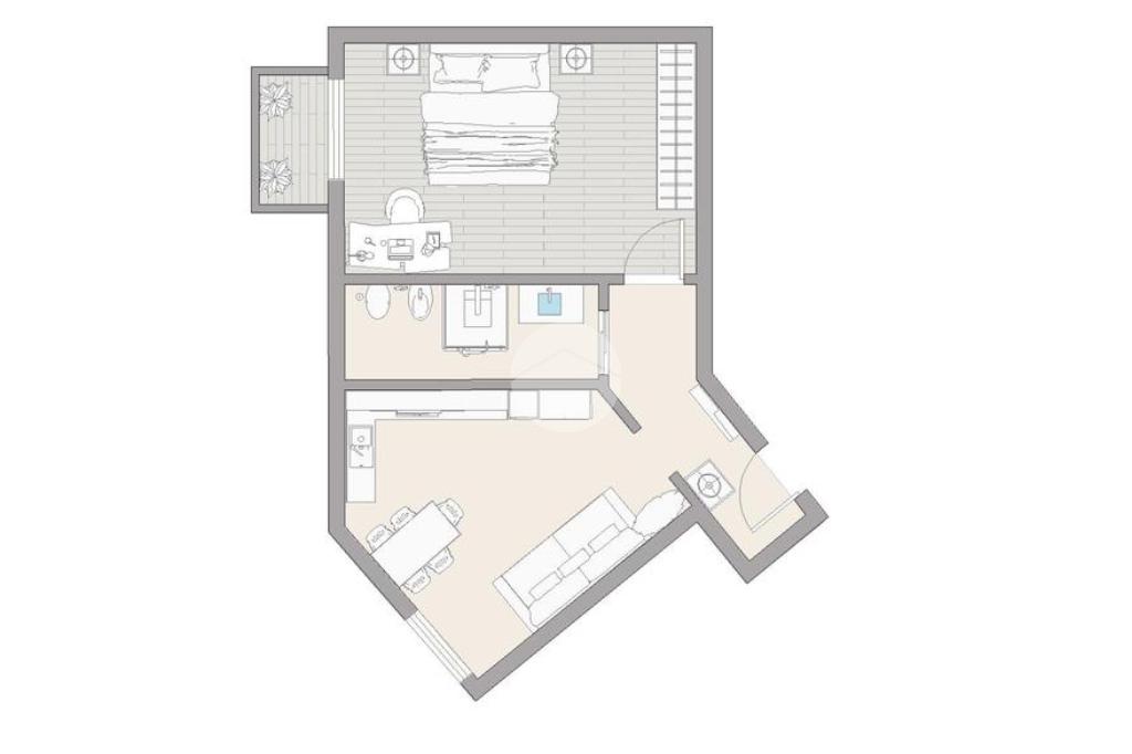 L'appartamento è composto da: ingresso in disimpegno, soggiorno, cucina, camera da letto, bagno e ripostiglio.