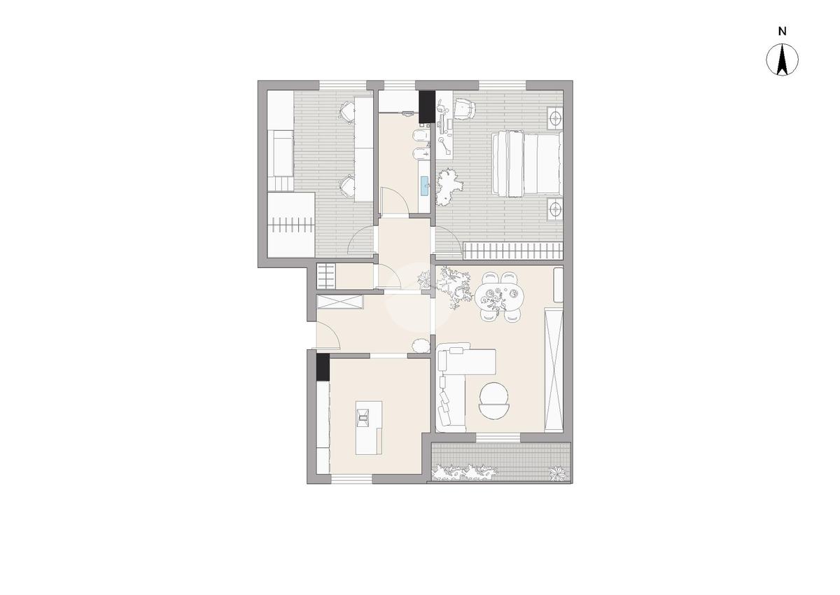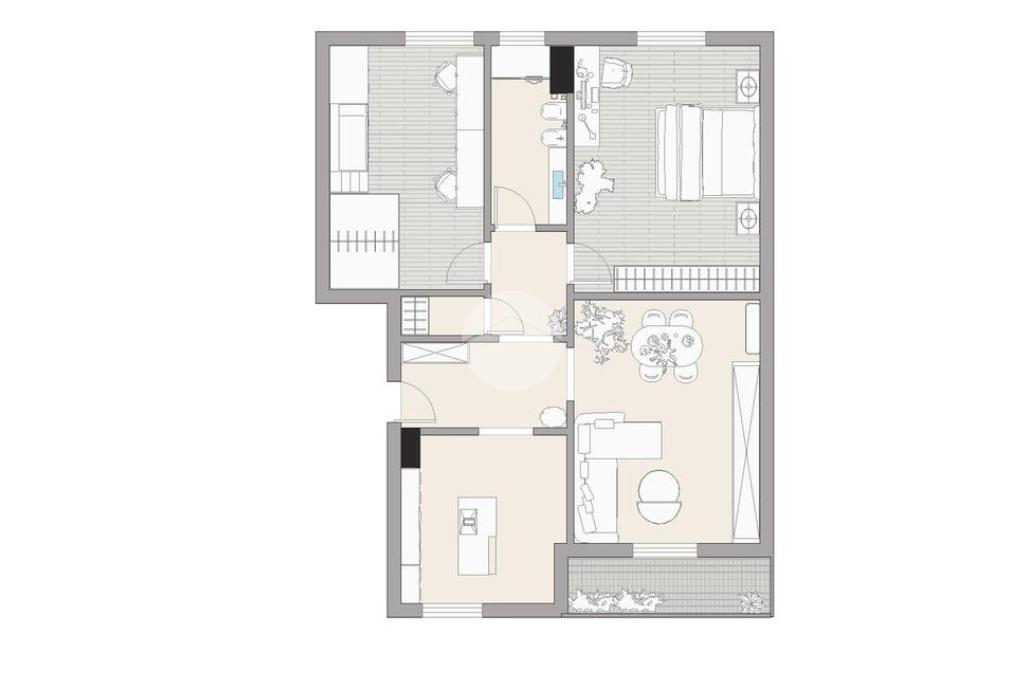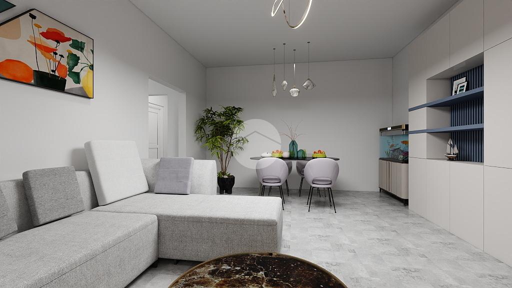 L'appartamento è composto da: ingresso, soggiorno, cucina, due camere da letto, ripostiglio e bagno.