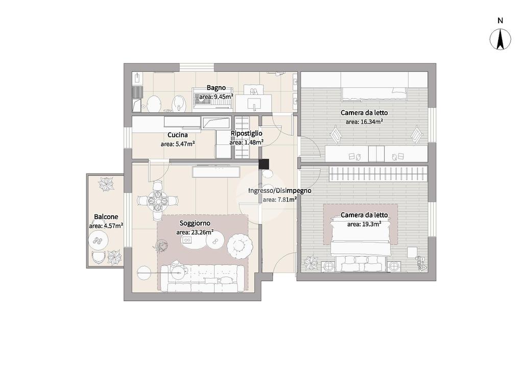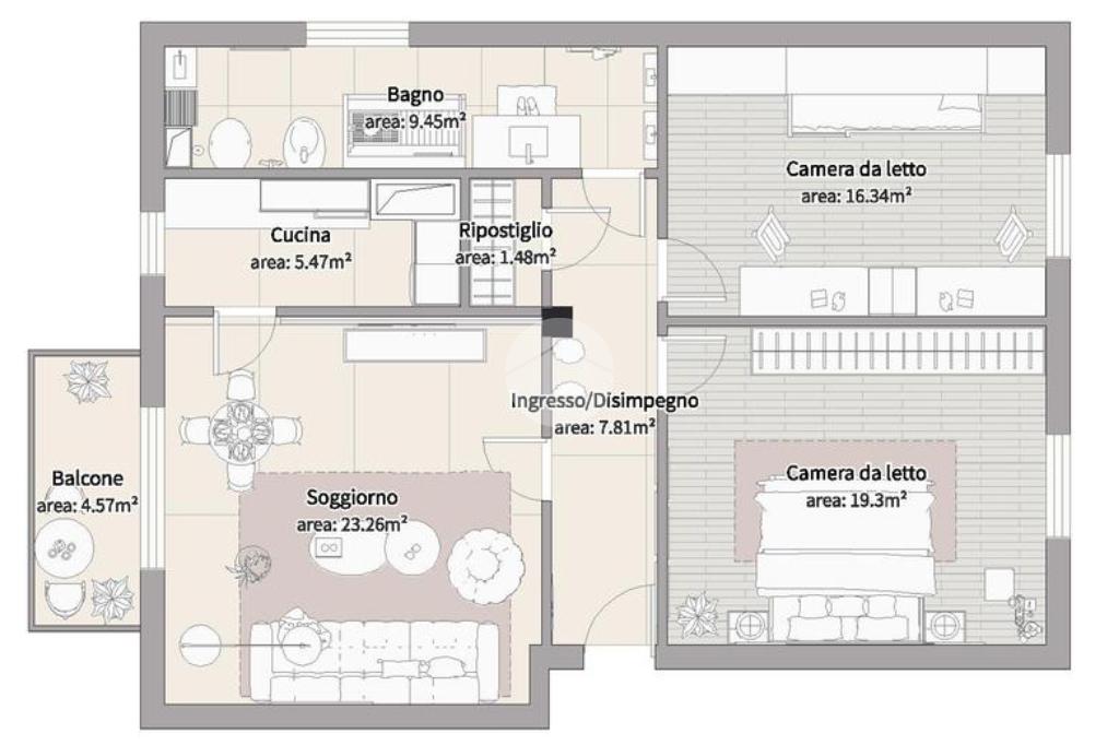 L'appartamento dispone anche di un balcone, che offre uno spazio esterno privato per momenti di relax, ed è dotato di cantina di pertinenza.