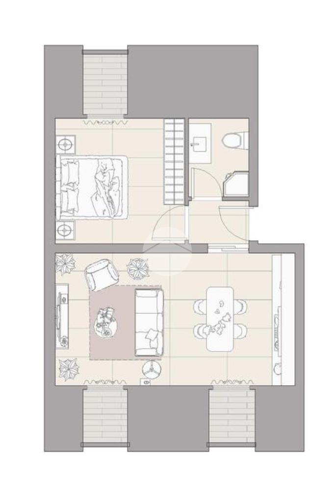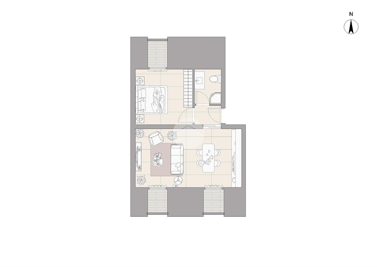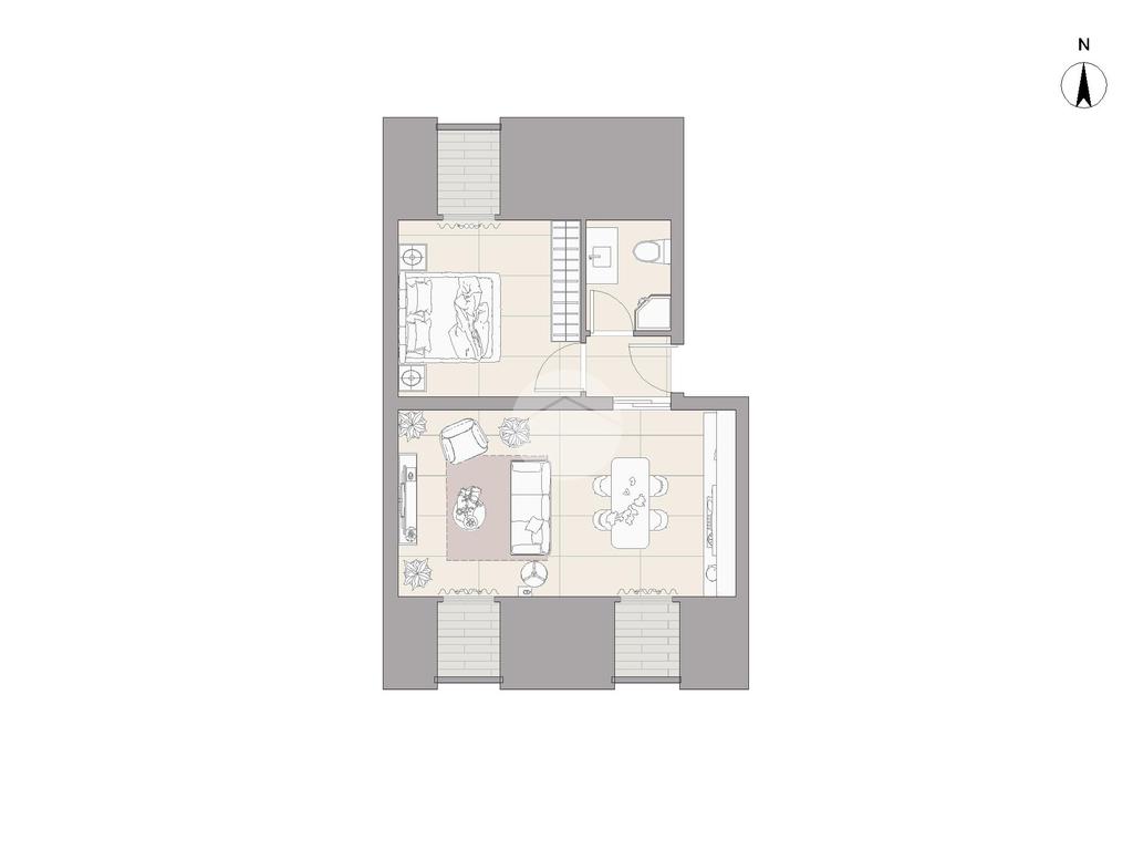 La soluzione è così composta: ingresso in disimpegno, open space cucina - soggiorno, camera da letto, bagno dotato di aerazione forzata.