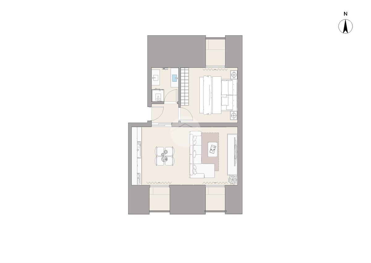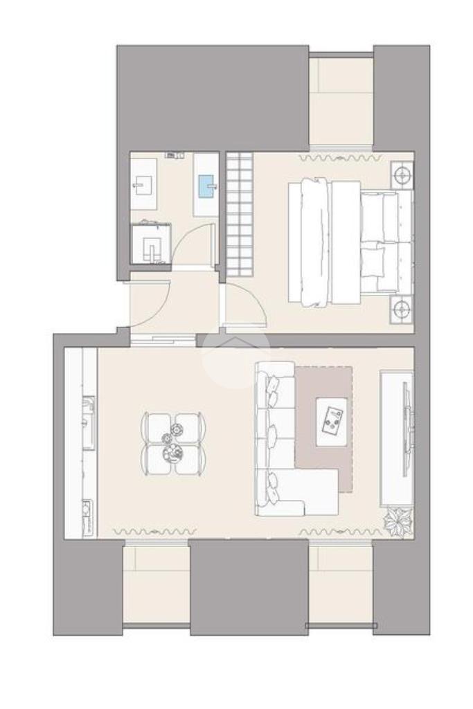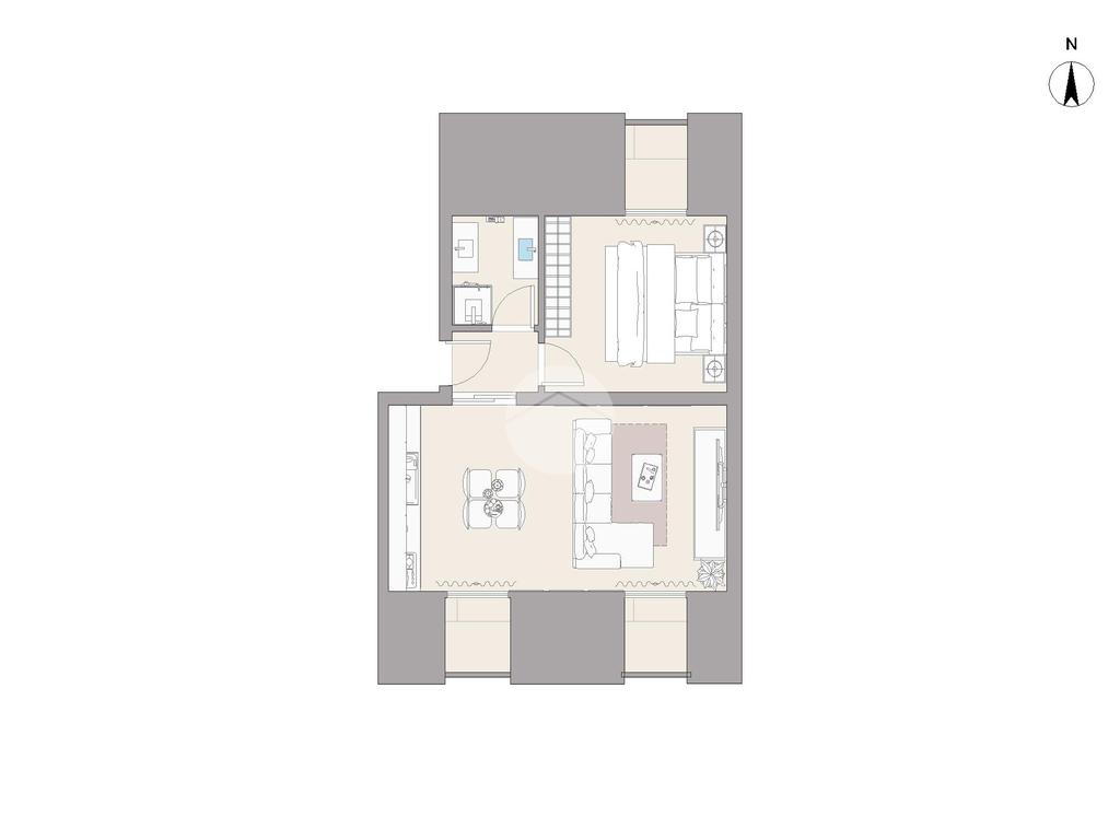 La soluzione è così composta: ingresso in disimpegno, open space cucina - soggiorno, camera da letto, bagno dotato di aerazione forzata.
