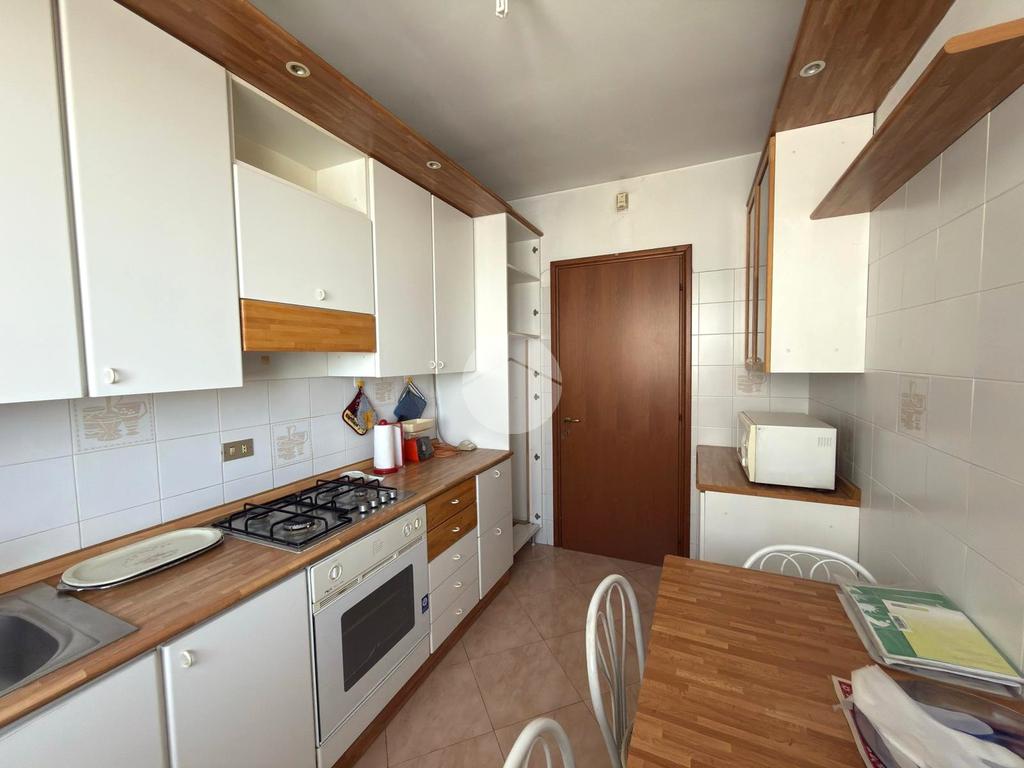 L'appartamento, situato al quindicesimo piano di un condominio dotato di ascensore, si compone di ingresso in ampio soggiorno, cucina abitabile, camera da letto, bagno, ripostiglio e ampio terrazzo per i momenti di relax.